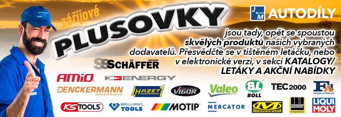 Přejeme vám příjemné čtení a listování v nových PLUSOVKÁCH, které budou tradičně k dostání začátkem měsíce na všech pobočkách J+M autodíly a samozřejmě v elektronické podobě na e-shopu, v sekci KATALOGY/LETÁKY A AKČNÍ NABÍDKY.