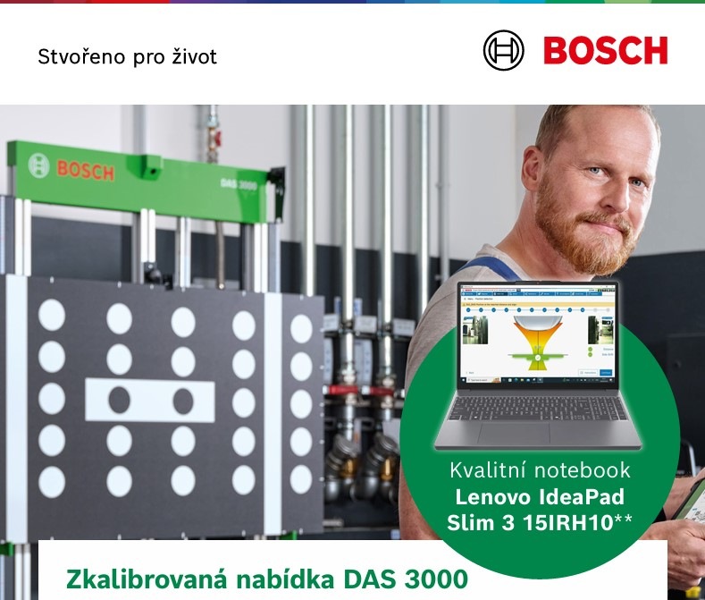 Za každé zakoupené univerzální zařízení pro kalibraci asistenčních systémů řidiče (ADAS) Bosch DAS 3000 získáte v rámci bonusového programu Bosch Extra, kvalitní notebook Lenovo IdeaPad Slim 3 jako odměnu. Navíc získáte nový software ADAS One Solution za 25 Kč na dobu 1 roku. Akce platí od 20. 9. do 15. 12. 2025.
