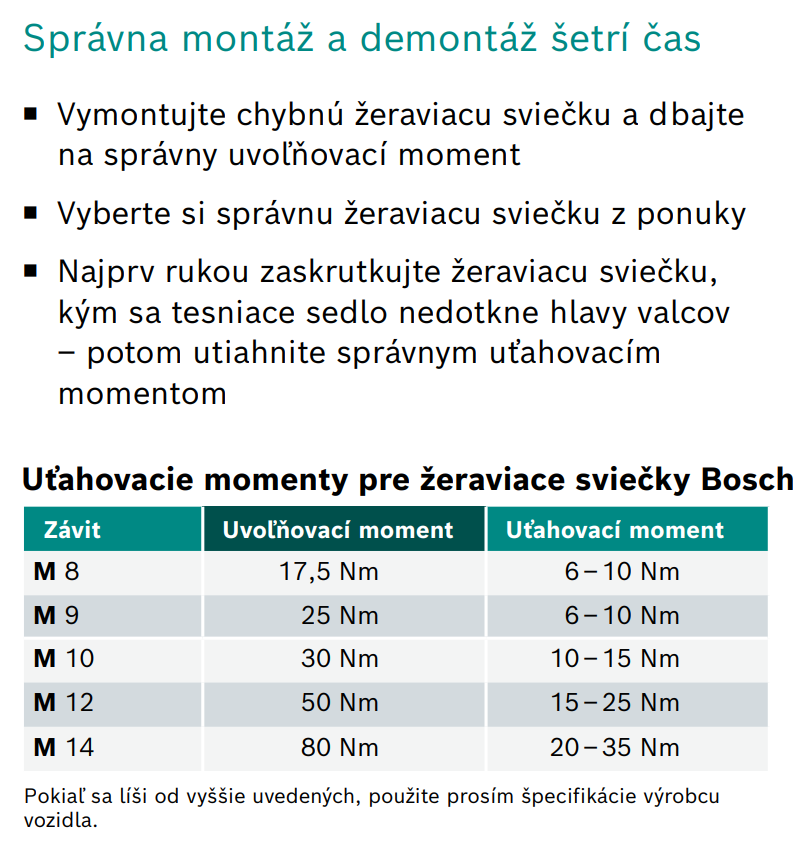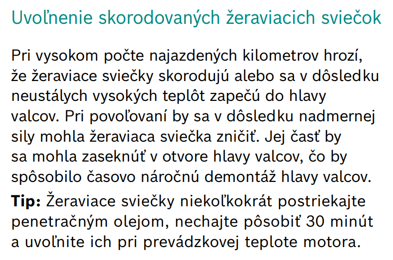 V dolnom obrázku zase odporúčanie postupu a uťahovacích momentov pri montáži nových žeraviacich sviečok. Odporúčanie výmeny všetkých žeraviacich sviečok na motore naraz je logické. Ak niektorá zo žeraviacich sviečok už nefunguje, určite budú aj tie ostatné na konci svojej životnosti.