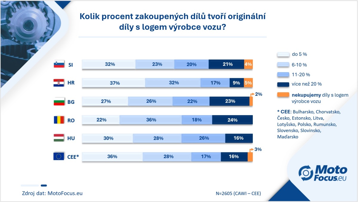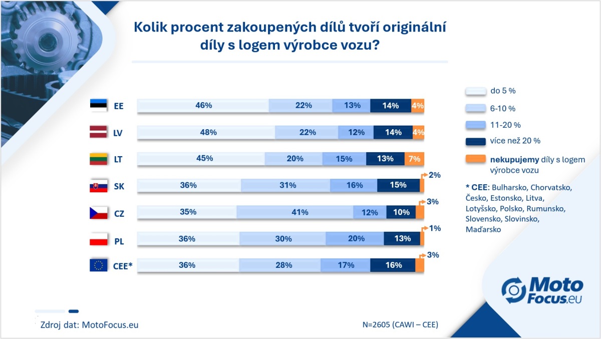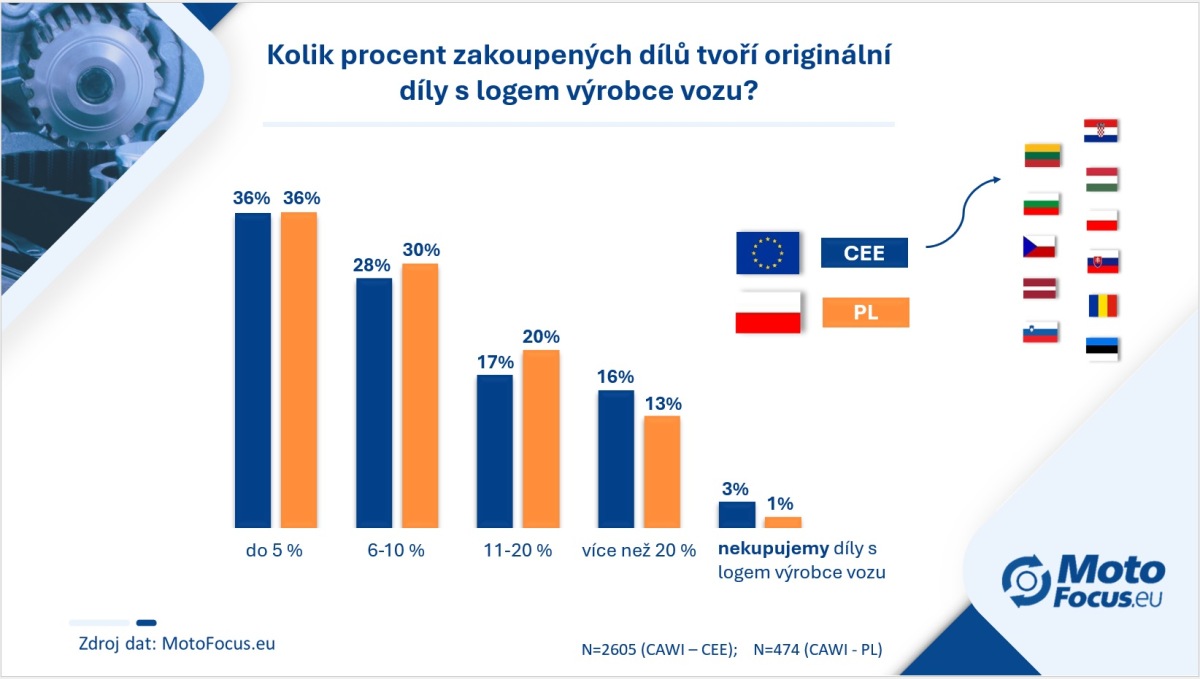Prieskum však tiež odhalil existenciu výraznej, i keď menšej skupiny servisov, pre ktoré majú diely s logom výrobcu automobilu väčší význam. V priemere v krajinách strednej a východnej Európy deklarovalo podiel OE dielov presahujúci 20 % všetkých nákupov len 16 % respondentov.