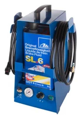 brzdových soustav, a právě tato skutečnost byla během vývoje ATE odvzdušňovacích přístrojů zásadní a důležitá. Speciální čerpací systém vytváří pulzující proud kapaliny, podporující kompletní propláchnutí a odvzdušnění brzdové soustavy. Přístroje ATE FB pracují přímo s ATE 5litrovým kanystrem s brzdovou kapalinou. Díky neustálé kontrole tlaku se transportní čerpadlo při prázdném kanystru samo vypne a tím je zajištěno, že se do brzdové soustavy nenačerpá žádný vzduch. Modely vyšších řad umožňují také odsátí staré kapaliny ze zásobní nádržky vozidla.